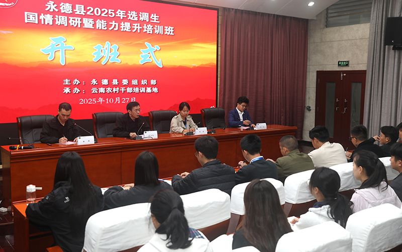 10月27日,由永德县委组织部主办,继续教育学院(云南农村干部培训基地)承办的永德县2025年选调生国情调研暨能力提升培训班在成教楼报告厅开班。继续教育学院党支部书记、云南农村干部培训基地副主任普文龙致辞,临沧市永德县委组织部部务委员、县公务员局局长李燕作开班动员讲话,继续教育学院(云南农村干部培训基地)培训办杨涛老师出席,继续教育学院(云南农村干部培训基地)张伟老师主持。来自永德县的19名学员参加本期培训。