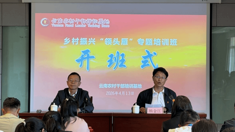 2026年4月13日上午,云南农村干部培训基地乡村振兴“领头雁”专题培训班正式开班。云南农业大学继续教育学院院长、云南农村干部培训基地副主任杨金江同志作开班动员讲话,云南农业大学继续教育学院(云南农村干部培训基地)党支部副书记戴波同志主持开班式。来自全省16个地州的村(社区)党组织书记共50人参加培训。